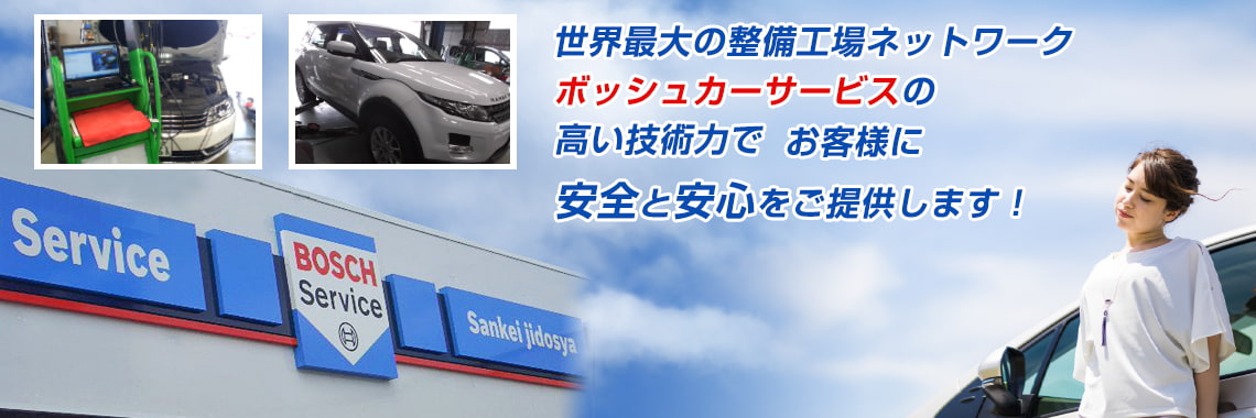 三恵自動車は世界中にネットワークを持つボッシュカーサービス(BOSCH CAR SERVICE)の加盟店です。最先端の診断機とメカニックの高い技術で、お客様の愛車を整備いたします。